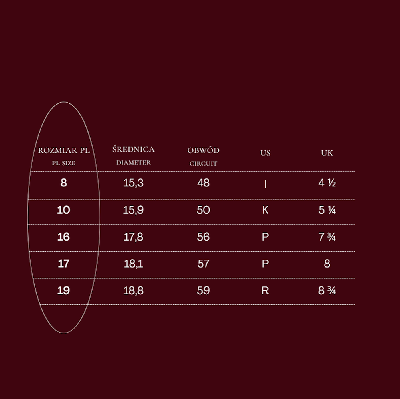 - Read the result from the tape measure (or measure the ribbon with a ruler) and compare it with the finger circumference value in the table.